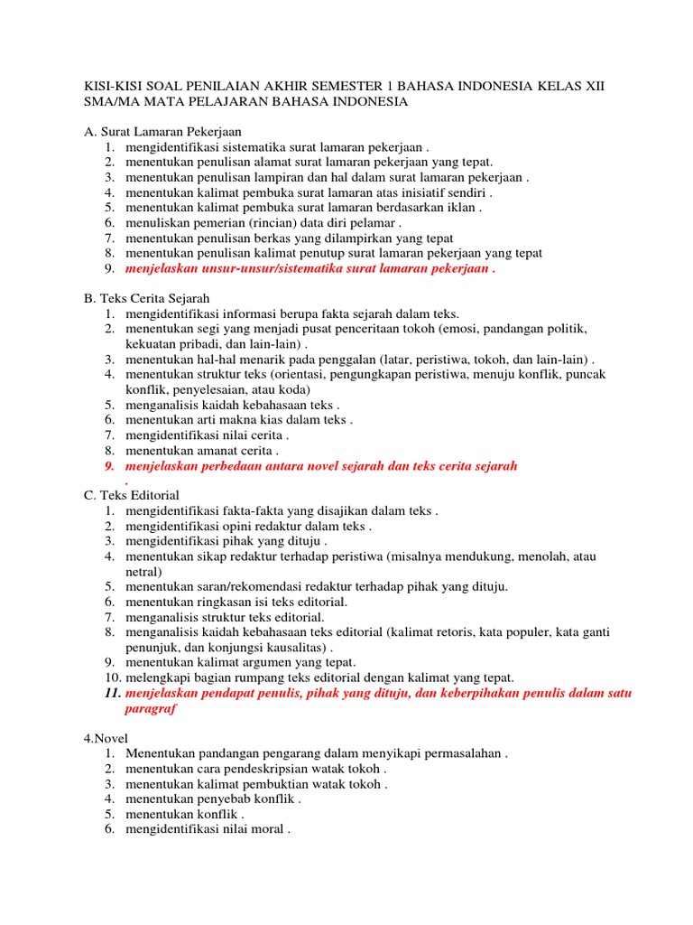 Ringkasan Materi Pembelajaran Bahasa Indonesia Kelas Xii Kurikulum 2013 Untuk Persiapan Penilaian Akhir Semester 1 Tahun Pelajaran 2019