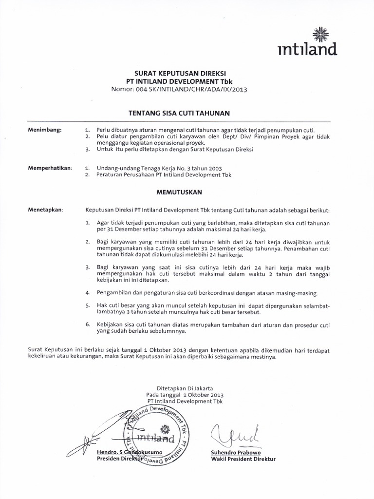 004 Surat Keputusan Direksi Tentang Sisa Cuti Tahunan