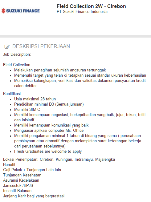 Loker Cirebon Terbaru Lowongan Kerja Pt Suzuki Finance Indonesia 2019 Kerjasurabaya Com Info Lowongan Kerja Di Surabaya Terbaru 2020