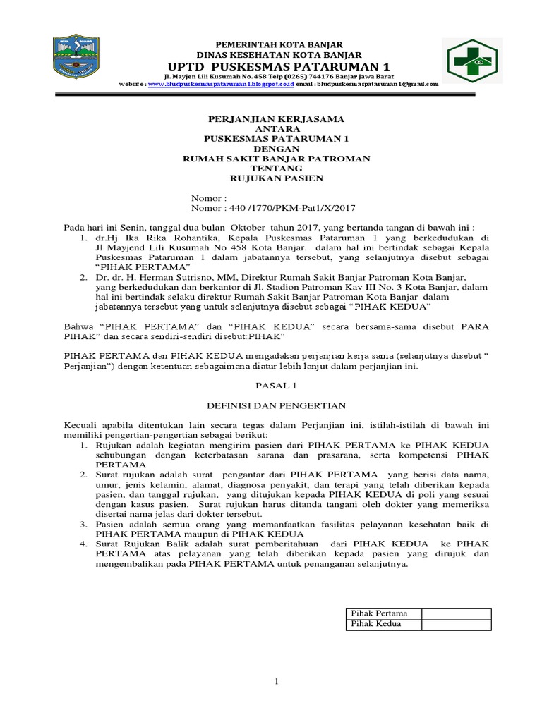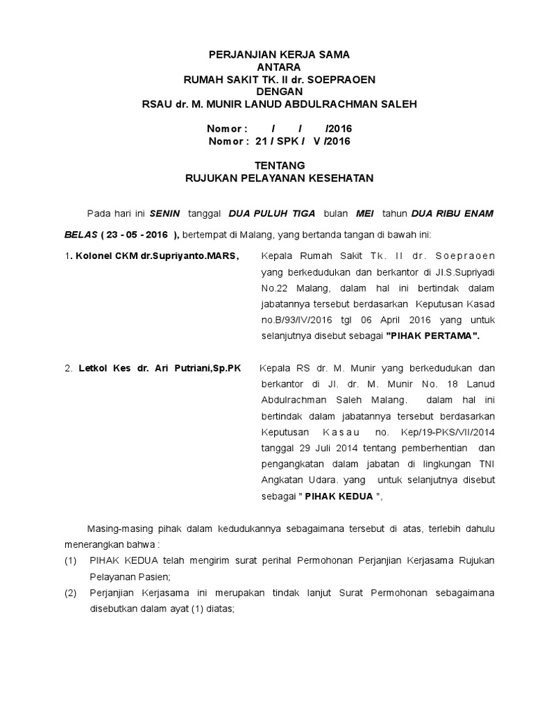 Contoh Mou Rujukan Dgn Rumah Sakit