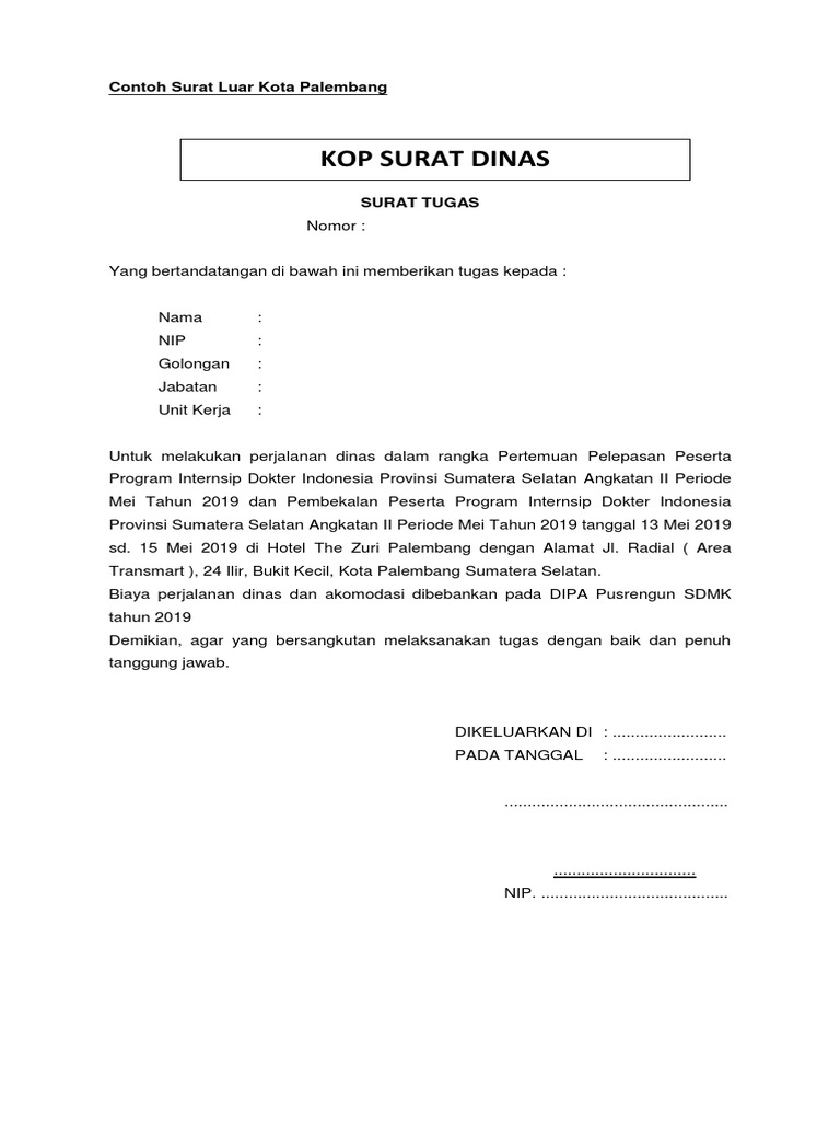 Contoh surat tugas perjalanan dinas keluar kota. Maka untuk pertanyaan di atas asalkan memenuhi syarat syarat di atas surat tugas daftar hadir output maka sudah terhitung perjalanan dinas dalam kota. Contoh surat tugas dinas sumber. Tugas kerja tersebut bisa. Sppd akan berisikan sebuah.
