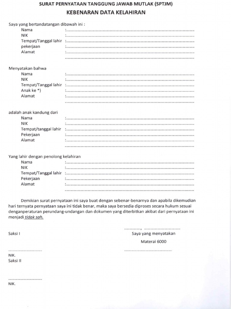 Mutlak Sptjm Surat Pernyataan Tanggung Jawab Mutlak Doc