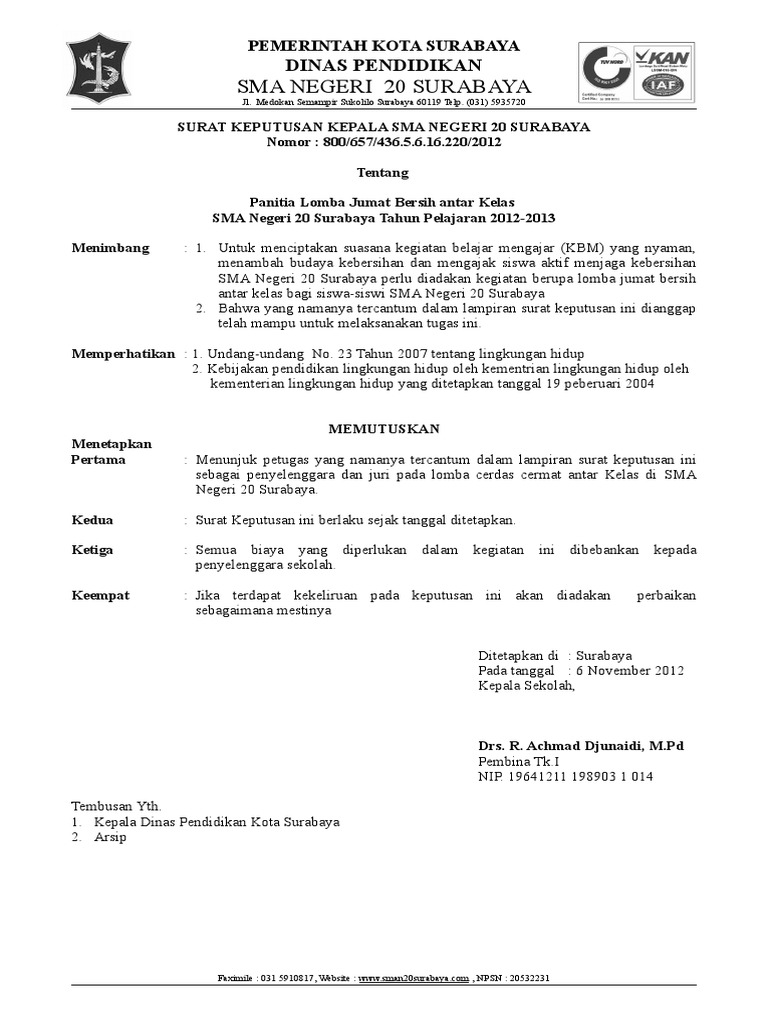 Surat keputusan lomba dekorum dan kebersihan pdf.