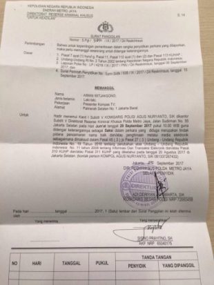 Surat Panggilan Polisi Pencemaran Nama Baik