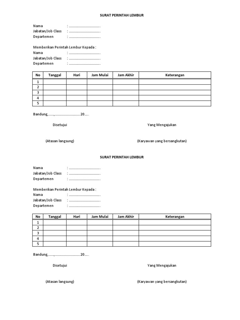 Sebab di dalam spl sudah tertera keterangan atas pekerjaan lembur. Contoh surat perintah lembur kerja karyawan pada kesempatan kali ini saya akan memberikan sebuah contoh surat untuk perintah lembur kerja pada karyawan yang mungkin kalian masih bingung atau belum mengerti cara dan. Spl adalah surat perintah yang dibuat oleh pihak atasan atau perwakilan perusahaan kepada perkerja untuk melakukan pekerjaan diluar jam kerja normal. Berdasarkan form pengajuan inilah nantinya karyawan yang bersangkutan akan dibayar sesuai dengan jamlembur yang tercantum dalam form tersebut.
