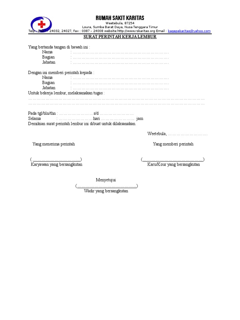 Surat perintah lembur karyawan. Karyawan yang melaksanakan tugas lembur dan namanya tertera di surat perintah lembur pun bisa mempertanggungjawabkan pekerjaan yang ia lakukan. Contoh form dan surat surat kantor beranda rabu 28 desember 2016 published 20 33 by p form lembur untuk melaksanakan tugas lembur biasanya karyawan memerlukan otorisasi dari atasan. Jika anda bekerja di sebuah perusahaan maka anda akan memiliki tanggung jawab pekerjaan yang diberikan oleh atasan anda. Dan untuk itu seorang atasan pun bisa menggunakan surat perintah lembur kepada karyawan tersebut.