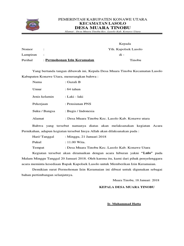 10 dasar surat permohonan izin keramaian dari kepala desa rakawuta kec mowila kab. Silahkan kunjungi postingan contoh surat pemberitahuan kegiatan ke kepolisian izin keramaian ke polisi untuk membaca artikel selengkapnya. Contoh surat izin keramaian yang baik dan benar untuk kegiatan pesta pernikahan di lingkungan desa info lengkap. Sebelum mengajukan surat izin ada baiknya anda melihat contoh surat izin keramaian dengan format yang benar agar surat yang anda ajukan meyakinkan.