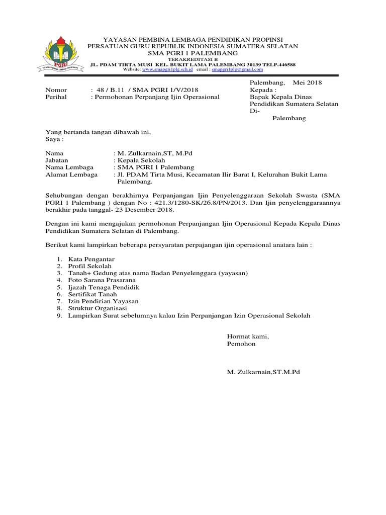 Surat Permohonan Perpanjangan Ijin Operasional Sekolah Kumpulan Surat Penting
