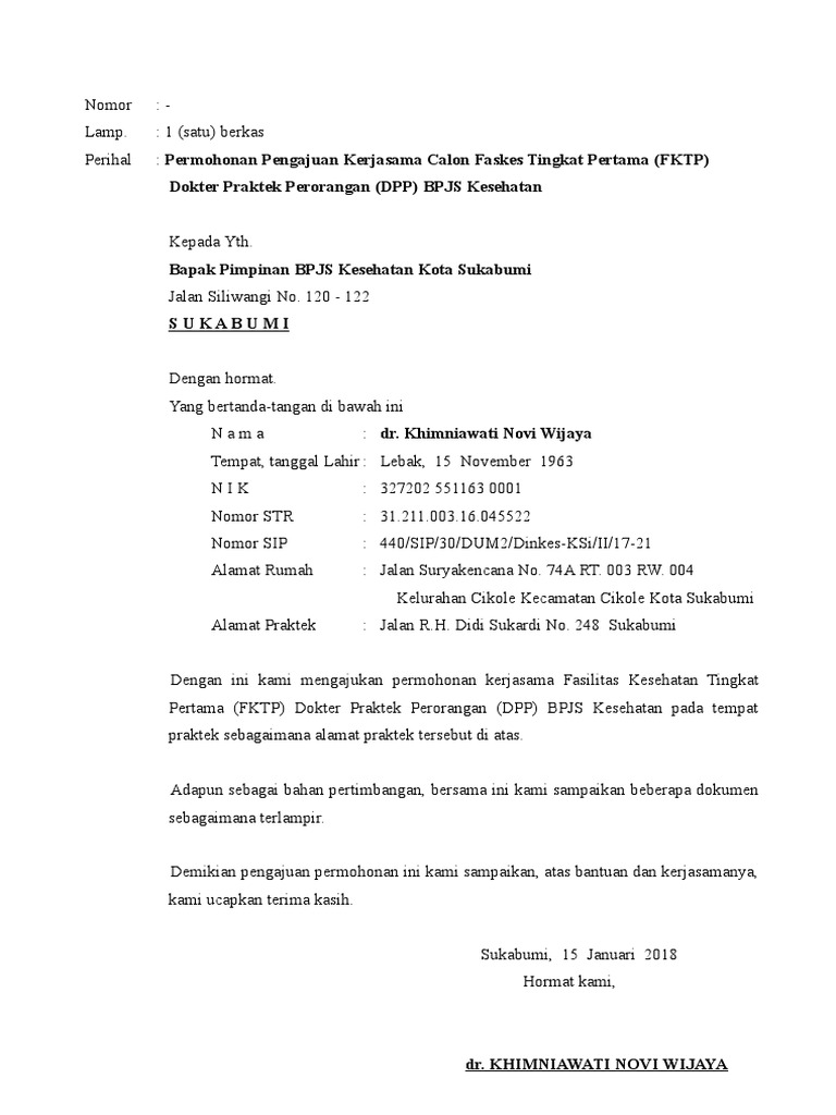 Surat Permohonan Kerjasama Menjadi Fktp Bpjs Kesehatan
