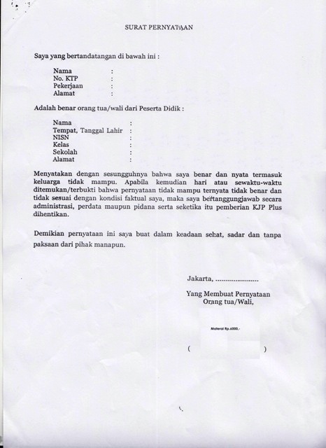 Surat Pernyataan Orang Tua Untuk Daftar Sekolah Info Pendidikan Terbaru